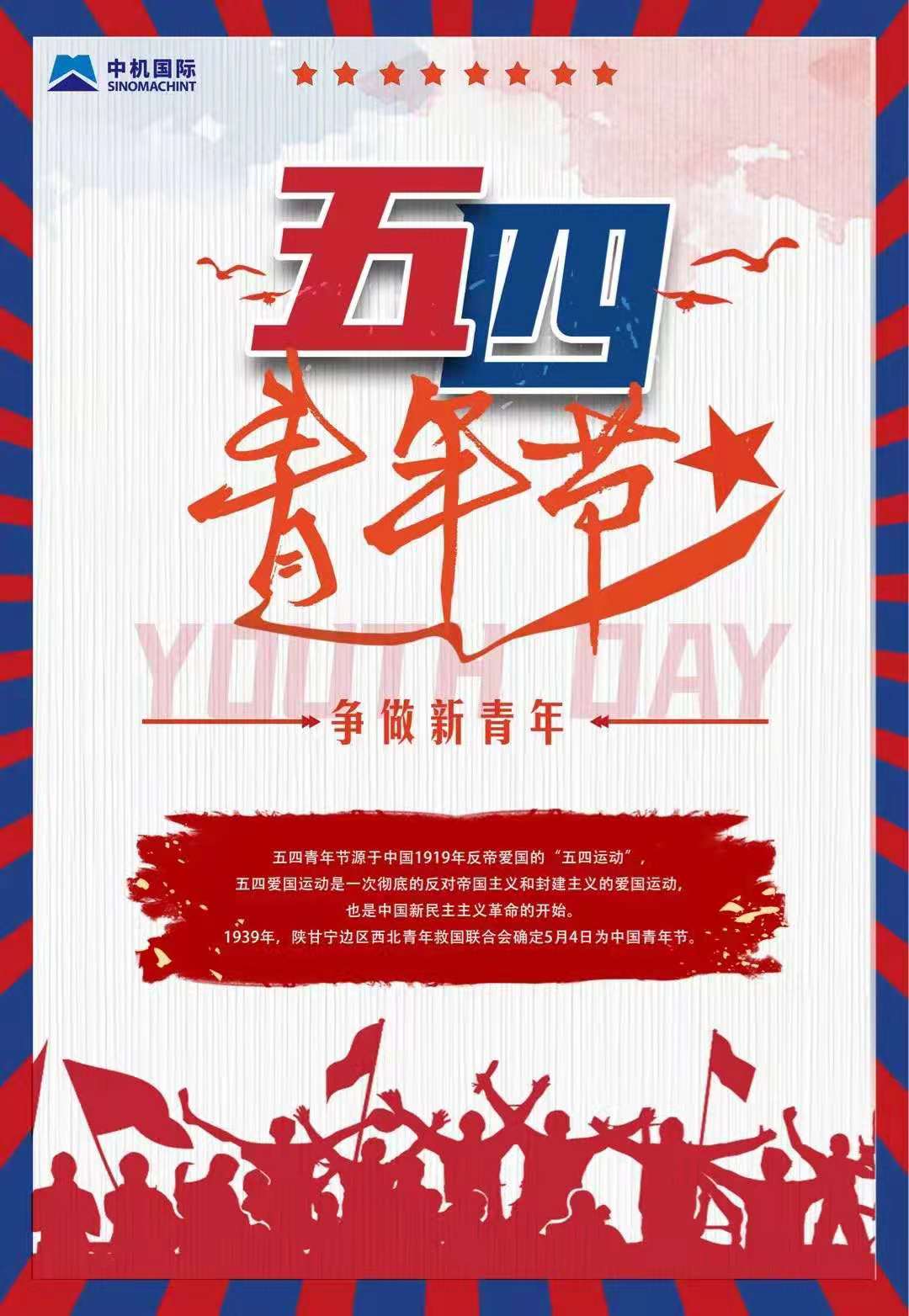 青春五月,生機盎然。值此五四青年節之際,我代表公司黨委向中機國際全體青年朋友致以節日的祝賀!向廣大共青團員、各級共青團干部和青年工作者致以親切的問(wèn)候!
